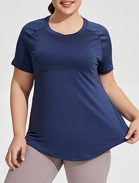 Per donna Taglia grande Maglietta T-shirt sportiva Tinta unica Elegante Classico Casual Manica Corta Girocollo Top lunghi Quotidiano Palestra Sportivo Nero Estate Primavera