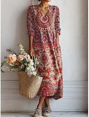Per donna Abito maxi Abito Boho Vestito Casual Abito a trapezio Abito Stampato Vintage All'aperto Vacanza Weekend Vestibilità comoda Grafico Paisley Manica Corta Scollo a V Arcobaleno Estate Primavera