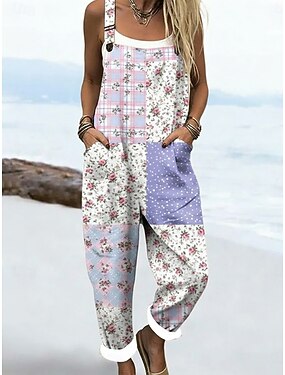 Per donna Salopette Attivo Floreale Senza Maniche Senza maniche Gamba larga Collo quadrato Tasca con tasca Quotidiano Spiaggia Vestibilità comoda Blu Rosa Verde Estate