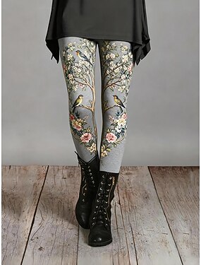 Per donna Leggings Leggings comodi Vacanza Vintage Stile Etnico Lunghezza intera Vita Alta Floreale Grafico Uccello Stampa Confortevole Elasticizzato Casuale Quotidiano All'aperto Grigio Primavera