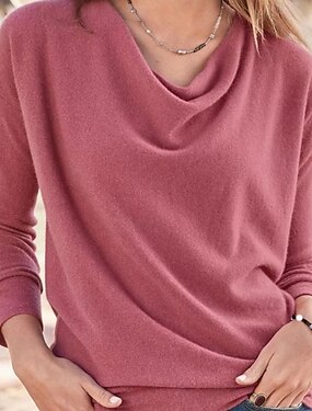 Per donna Blusa Top Eleganti Arricciato Patchwork Tinta unica Semplice Elegante Vintage Quotidiano Manica Lunga Scollo a Cascata Top Regolari Quotidiano Lavoro Ferie Rosa Rosso Arancione Verde Cachi