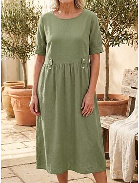 Per donna Abito Midi Abiti in cotone e lino Abito a Tubino Vestito Casual Moderno Quotidiano All'aperto Vacanza Vestibilità comoda Semplice Senza Maniche Girocollo Bianco Viola Verde Grigio Estate