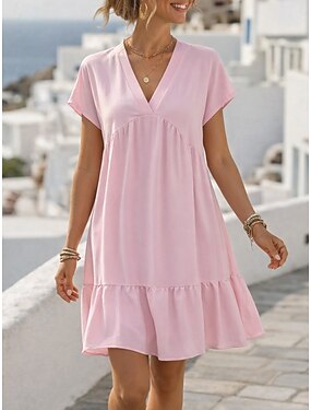 Per donna Abito al ginocchio Abito a trapezio Casual Vestibilità comoda Semplice Manica Corta Scollo a V Verde salvia Nero Rosa Blu scuro Estate Primavera