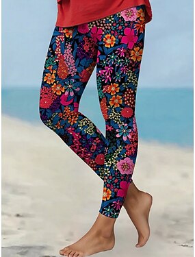 Per donna Pantaloni Leggings Leggings comodi Streetwear Casual Lunghezza intera Vita Alta Floreale Elastico in vita Stampato Traspirabilità Confortevole Elasticizzato Vacanza Streetwear Abbigliamento