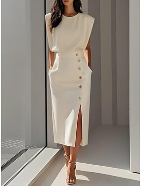 Per donna Abito maxi Tubino Casual All'aperto Uscire Taglia piccola Tinta unica Mezza Manica Senza Spalle Nero Bianco Albicocca Estate Primavera Autunno