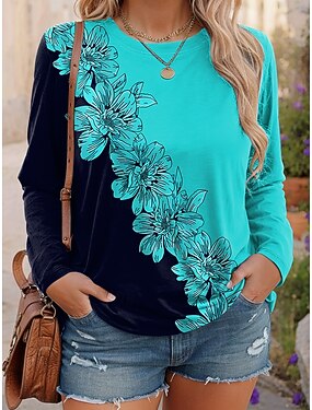 Per donna Taglia grossa Top Maglietta Floreale Geometria Stampato Manica Lunga Girocollo Casual Quotidiano Poliestere Autunno Inverno Blu Giallo