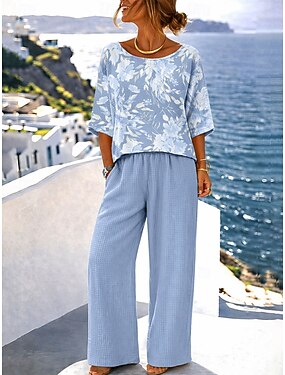 Per donna Set di Pantaloni Mezza Manica A farfalla Girocollo Grafico Geometrico Elegante Vacanza Casuale Quotidiano Spiaggia Blu Verde Cachi Primavera & Estate Vestibilità comoda