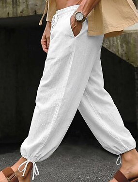 Per uomo Pantaloni di Lino Pantaloni Pantaloni Estivi Coulisse Elastico in vita Gamba larga Semplice Comodità Traspirante Lunghezza intera Casuale Quotidiano Ferie Moda Stile Classico Vestibilit