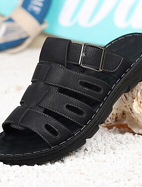 Sandali da uomo neri a punta aperta con fibbia regolabile, sandali da spiaggia leggeri e comodi, stile casual da resort per uomo, ideali per le vacanze, la piscina e l'uso quotidiano estivo.