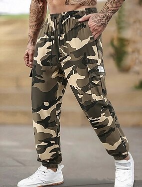 Per uomo Pantaloni Cargo Pantaloni casual Coulisse Tasca Mimetico Comodità Confortevole Lunghezza al ginocchio Casuale Quotidiano Casa Vacanza Semplice Verde militare Bianco Inelastico