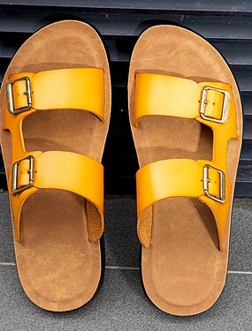 sandali da uomo in similpelle gialla con doppia fibbia, alla moda e comodi per le giornate estive in spiaggia