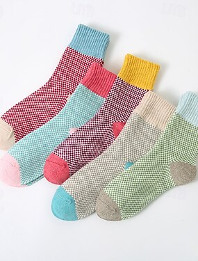 Calzini Calzini Sportivi Calzini divertenti Esercizio all'Aperto Camminata Bicicletta / Ciclismo Calore Termico Antivento 5 Paia Grafico Geometrico Poliestere Rosa Verde Cachi Taglia unica