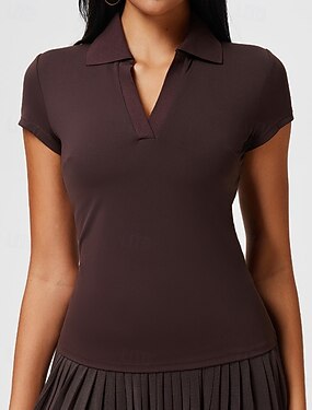Per donna Tinta unita Maglia atletica Maglietta da tennis Polo da tennis Canotte Manica Corta Asciugatura Rapida Taglia piccola Traspirante Tennis Corsa Pickleball Scollo a V Top Nero Bianco Caffè