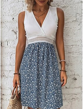 Per donna Maglietta Pizzo Patchwork Semplice Moda Elegante Classico Manica Corta Scollo a V Top Regolari Quotidiano Uscire Weekend Nero Bianco Giallo Azzurro cielo Viola Estate Primavera