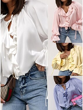Per donna Camicia Blusa Volant Patchwork Semplice Elegante Vacanza Streetwear Manica Lunga Scollo a V Top Regolari Quotidiano Ferie Uscire Bianco Giallo Rosa Viola Primavera Autunno