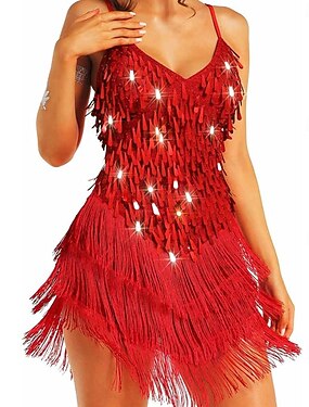 Abito samba da donna degli anni '20 in paillettes con frange per flapper vestito per danza latina salsa tango ballo