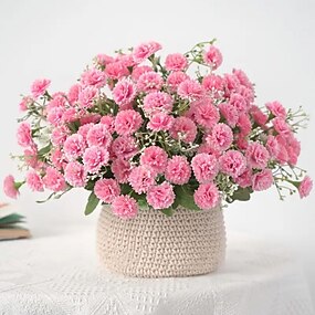 Bouquet di 15 garofani rossi vivaci - calda composizione floreale artificiale - fiori finti per la casa, adatti per matrimoni, uffici, decorazioni natalizie, San Valentino, festa della mamma,