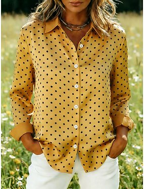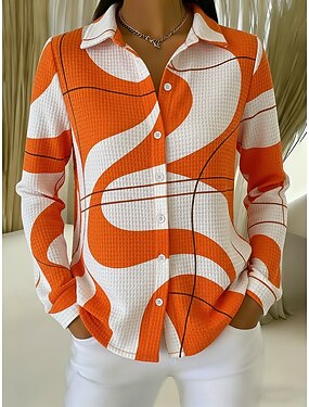 Per donna Camicia Bottoni Stampato Geometrico Attivo Quotidiano Elegante Manica Lunga Colletto a Camicia Top Regolari Quotidiano Ferie Bianco Arancione Estate Primavera