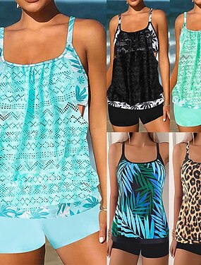 Per donna Normale Costumi da bagno Tankini Due pezzi Shorts Costume da bagno All'americana 2 Pezzi Stampa Abbigliamento da Spiaggia Estate Leopardo Senza Maniche Costumi da bagno