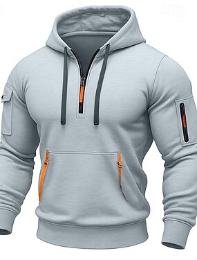 Per uomo Felpa con cappuccio Felpa con cappuccio e zip corta Felpa con cappuccio in pile Nero Bianco Blu marino Cachi Grigio chiaro Con Cappuccio Semplice Patchwork Zip a un quarto Sport & Outdoor