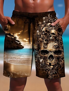 Per uomo Vintage Acqua di mare Teschi Costumi da bagno Costumi da bagno Pantaloncini da bagno Pantaloncini da Surf Misura del girovita medio Hawaiano All'aperto Vacanza Tasche Laterali fodera in rete