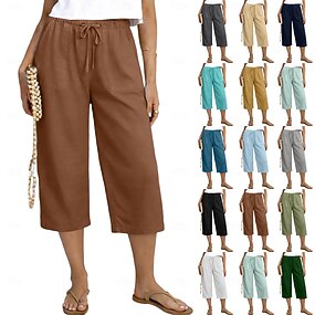 Per donna Pantaloni Corti Capri in lino Moda Essenziale Lunghezza al polpaccio Vita media Semplice Coulisse Tasca Elastico in vita Leggero Traspirante Inelastico Vacanza Streetwear Abbigliamento