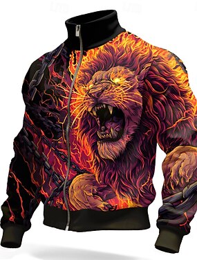 Per uomo Leone Fiamma Giacca di pelle Felpa Cool Quotidiano Fantasia Pantaloni Tattici Collo alla coreana All'aperto Abbigliamento casual alla moda Feste Viola Arancione Verde Con zip Primavera
