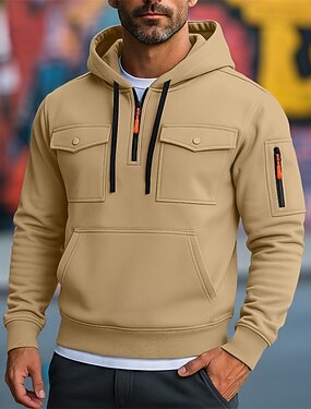 Per uomo Felpa con cappuccio Felpa con cappuccio e zip corta Felpa con cappuccio tattica Nero Verde militare Blu marino Cammello Con Cappuccio Semplice Tasca Zip a un quarto Sport & Outdoor Casuale