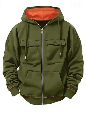 Per uomo Felpa con cappuccio Felpa con cappuccio a zip intera Felpa con cappuccio in pile Verde militare Cachi Grigio Con Cappuccio Semplice Cerniera Tasca Frontale Tattico Sport & Outdoor Casuale