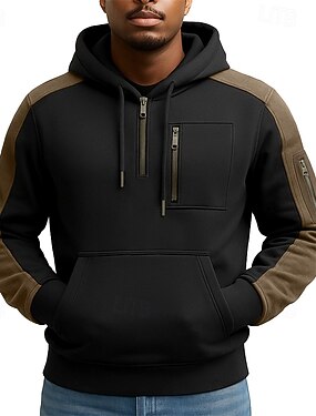 Per uomo Felpa con cappuccio Felpa con cappuccio e zip corta Felpa con cappuccio in pile Nero Bianco Blu marino Cachi Grigio chiaro Con Cappuccio Semplice Patchwork Zip a un quarto Sport & Outdoor