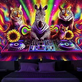 Tappeto murale Blacklight Che brilla al buio Festa luminosa Reattivo ai raggi UV Animale Trippy nebbioso DJ Tappeto murale per soggiorno camera da letto