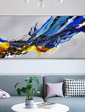 pittura a olio fatta a mano su tela wall art decor originale cielo blu dipinto di paesaggi astratti per la decorazione domestica con cornice allungata / senza cornice interna