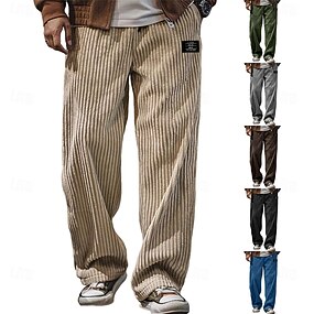 Per uomo Pantaloni Pantaloni in velluto a coste Pantaloni invernali Pantaloni casual Coulisse Gamba Dritta Tinta unica Comodità Lunghezza intera Casuale Quotidiano All'aperto Moda Stile Classico Nero