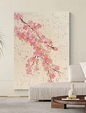 dipinto a olio fatto a mano su tela decorazione artistica da parete trama astratta pittura floreale rosa fiore di pesco soggiorno ingresso decorazione arredamento casa dipinto arrotolato senza cornice