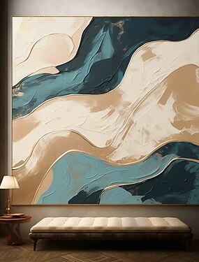 dipinto a olio su tela di paesaggio urbano oceanico astratto fatto a mano, grande arte murale, dipinto originale di paesaggio marino blu, dipinto personalizzato, arredamento minimalista per soggiorno