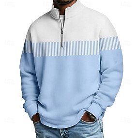 Per uomo Blocco di colori A righe Polo con zip Manica Lunga Magliette polo Colletto alla coreana Casual Scuola Athleisure Ferie Abbigliamento quotidiano Stampa 3D Polo con cerniera a un quarto