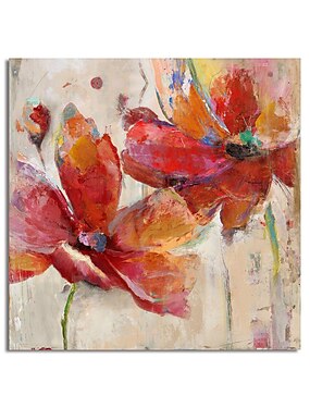 Pittura A Olio Fatta A Mano Dipinta A Mano Arte Della Parete Astratta Fiori Rossi Tela Dipinto Decorazione Della Casa Decor Telaio Allungato Pronto Da Appendere