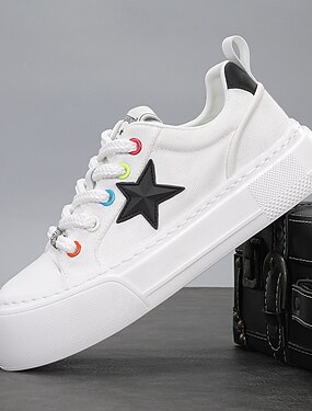Sneakers casual da uomo bianche con plateau, allacciate, leggere e comode, ideali per camminare, scarpe basse alla moda per l'uso quotidiano, i viaggi, lo street style e le uscite del fine settimana.