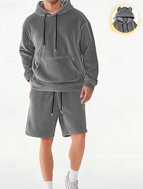 Per uomo Felpa con cappuccio Tuta da Ginnastica Felpa con cappuccio e pantaloncini Impostato Felpa con Cappuccio All'aperto Vacanza Quotidiano Coulisse Semplice Nero Verde Grigio Abbigliamento