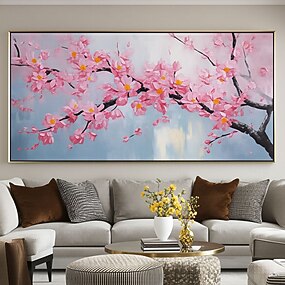 dipinto fatto a mano di fiori di ciliegio rosa in fiore, dipinto a mano 3d, paesaggio floreale, arte primaverile, texture floreale, arte murale, dipinto astratto di cime di alberi, regalo