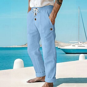Per uomo Pareggiatore Pantaloni di lino Pantaloni Pantaloni estivi A cordoncino Plissettato Liscio Comfort All'aperto Da mare Giornaliero Per eventi Di tendenza Bianco
