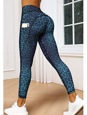 Per donna leggings da pilates Pantaloni fitness Leggings da palestra Tasche Bollo Tasche Laterali Pilates Palestra Allenamento in Palestra Pantaloni Collant Leggings Grafico Leopardato Ametista Verde