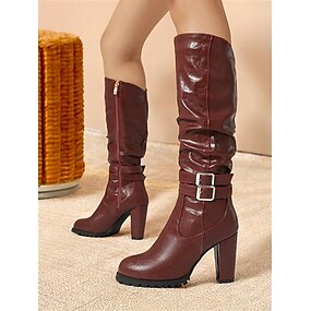stivali alti fino al ginocchio con tacco alto bordeaux da donna con cinturini con fibbia: calzature chic ed eleganti per l'inverno e le occasioni di festa