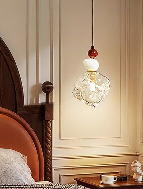 Lampadario a sospensione in vetro irregolare, lampadario creativo, faretto a goccia in ottone a testa singola, apparecchio di illuminazione G9, sospensione regolabile in altezza con filo per testiera