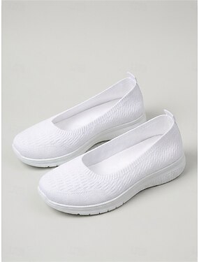 Scarpe da passeggio da donna bianche, leggere e facili da indossare: sneakers comode e traspiranti in maglia, ideali per viaggiare, per l'uso quotidiano e per il tempo libero.