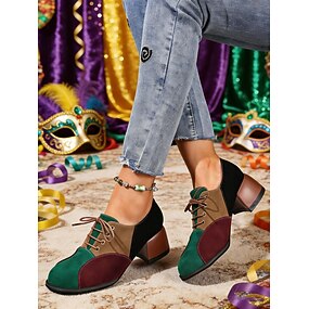 Oxfords a tacco a blocco patchwork multicolore da donna per il Mardi Gras – Pump in panno a blocchi di colore retro per costumi di Carnevale clown e abbigliamento funky quotidiano
