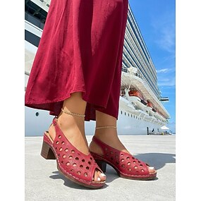 sandali rossi da donna con tacco, punta aperta e dettaglio ritagliato: comode scarpe aperte per San Valentino, incontri informali e abbigliamento casual