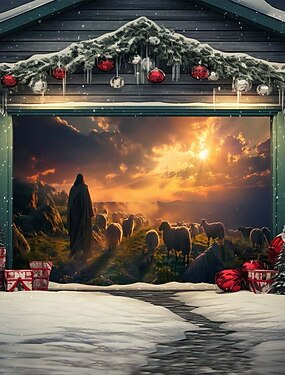 Copertura per porta da garage con fantasia floreale natalizia – arredamento per soggiorno, tenda in stile festivo