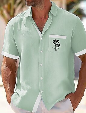 Per uomo Albero di Cocco Piante Tropicali Camicia di lino Camicia da Spiaggia Camicia hawaiana estiva Manica Corta Hawaiano Vacanza Ferie Abbigliamento mare Estate Primavera Colletto camicie con