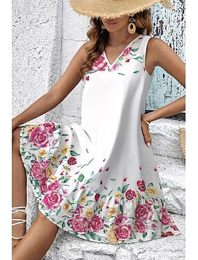 Per donna Mini Abito Vestito Estivo Abito a trapezio Abito Estivo Casual Quotidiano Ferie Vestibilità regolare Floreale Grafico Senza Maniche Scollo a V Blu Nero Rosso Estate Primavera